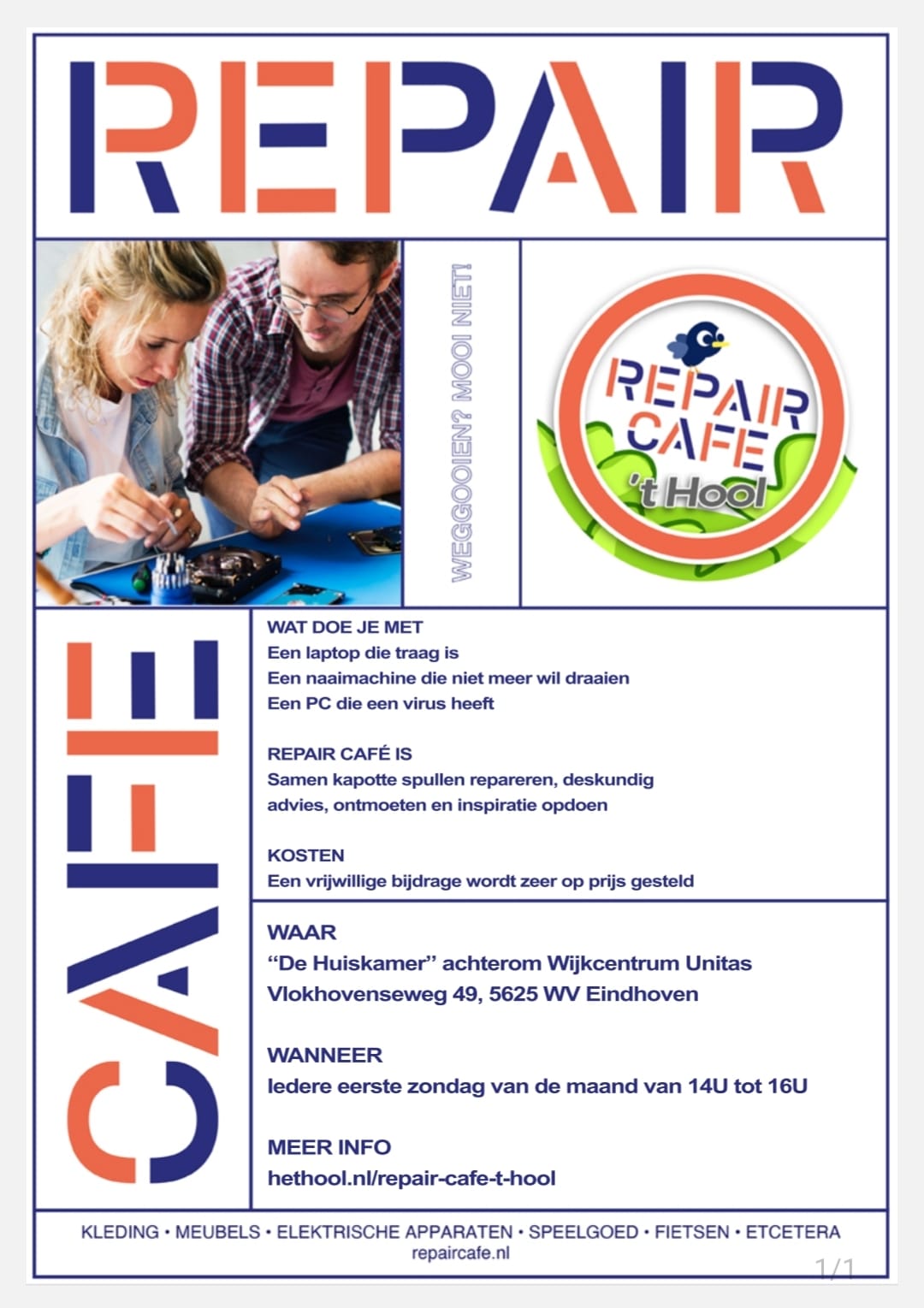 Check hieronder ook de flyers en foto’s van ons RepairCafé (klik voor een grote foto)